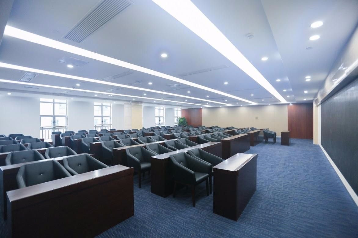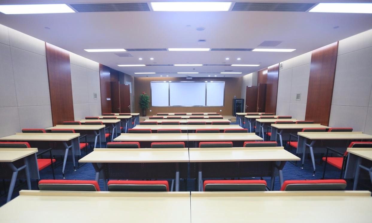類型4教室:共有2間,每間可容納112人、可舉辦大型座談會、論壇、培訓(xùn)會議等,后期計(jì)劃實(shí)現(xiàn)同聲傳譯功能,為中大型培訓(xùn)、會議提供更好的技術(shù)支持。教室內(nèi)配有無線網(wǎng)絡(luò)覆蓋、網(wǎng)絡(luò)地板、LED大屏等電子設(shè)備。