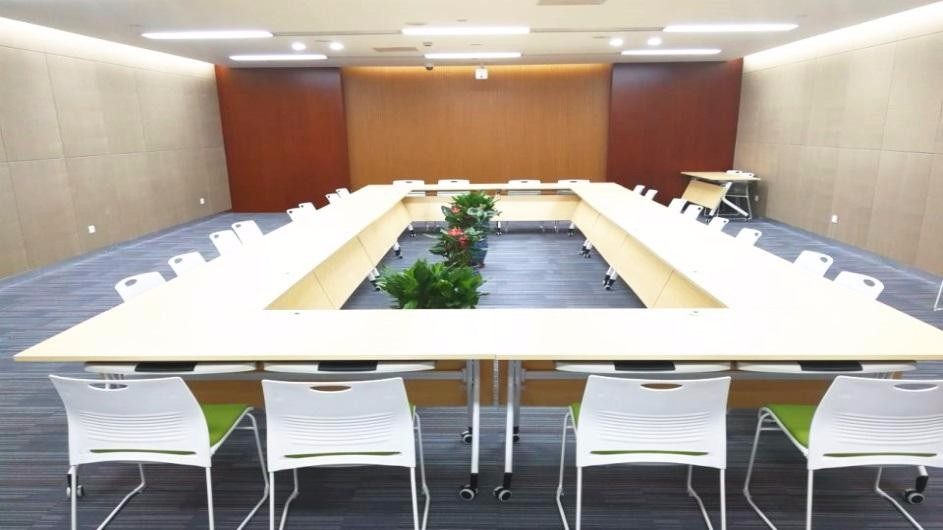 U型會議室可容納36人進(jìn)行小型座談、研討會。會議室內(nèi)配有無線網(wǎng)絡(luò)覆蓋、網(wǎng)絡(luò)地板、電子教學(xué)白板(支持投影、觸控、手寫)等設(shè)備。