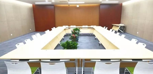 U型會(huì)議室可容納36人進(jìn)行小型座談、研討會(huì)。會(huì)議室內(nèi)配有無(wú)線網(wǎng)絡(luò)覆蓋、網(wǎng)絡(luò)地板、電子教學(xué)白板(支持投影 觸控、手寫(xiě))等設(shè)備。